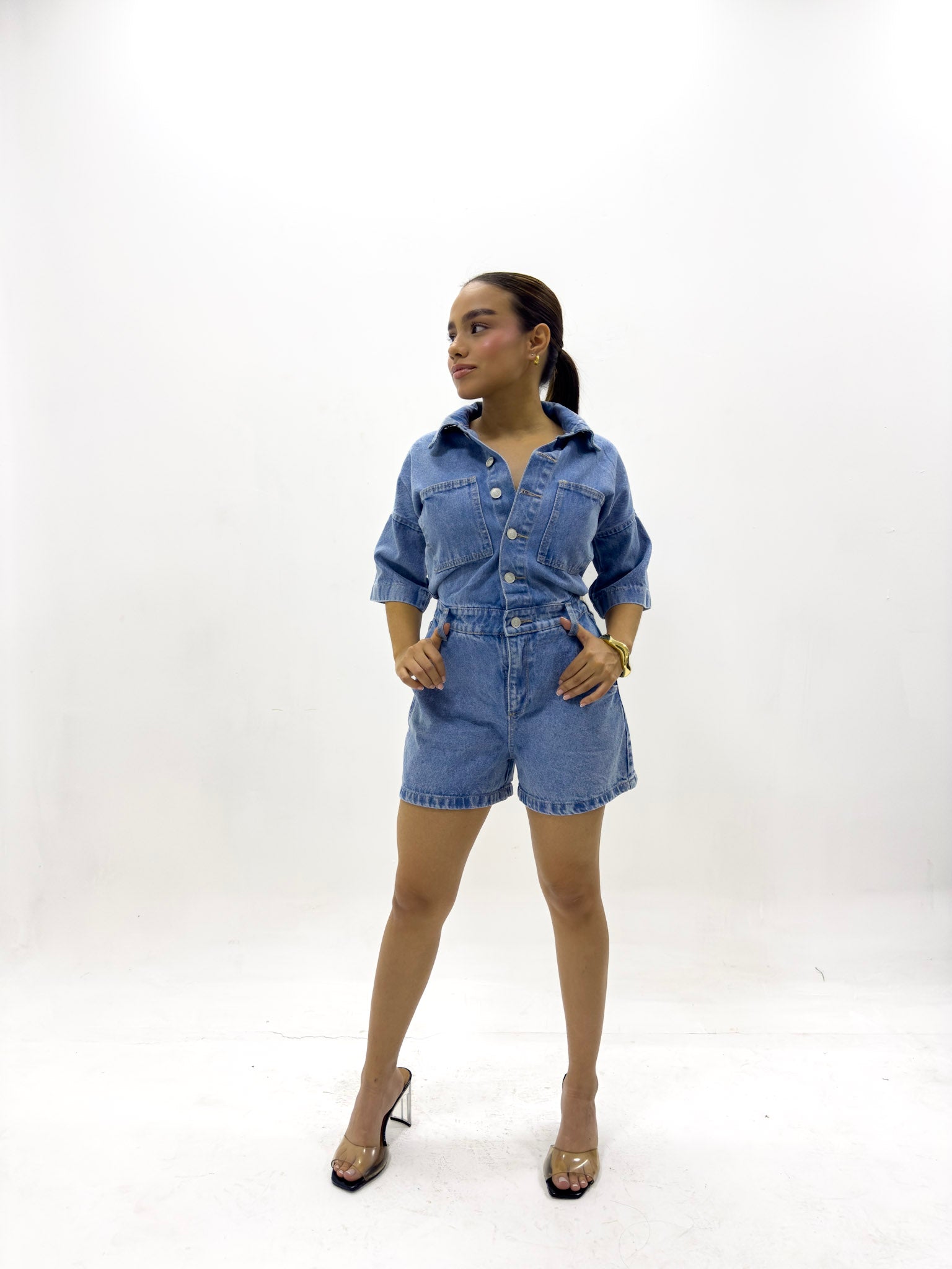Este enterizo corto ofrece una combinación equilibrada entre estilo y practicidad. Su diseño limpio y bien estructurado realza la silueta con un aire fresco y contemporáneo, mientras que la tela ligera aporta comodidad durante todo el día. Es una pieza versátil que se adapta fácilmente a diferentes entornos, permitiéndote crear un look pulido y moderno con muy poco esfuerzo. Ideal para quienes buscan una prenda funcional sin renunciar a la elegancia.